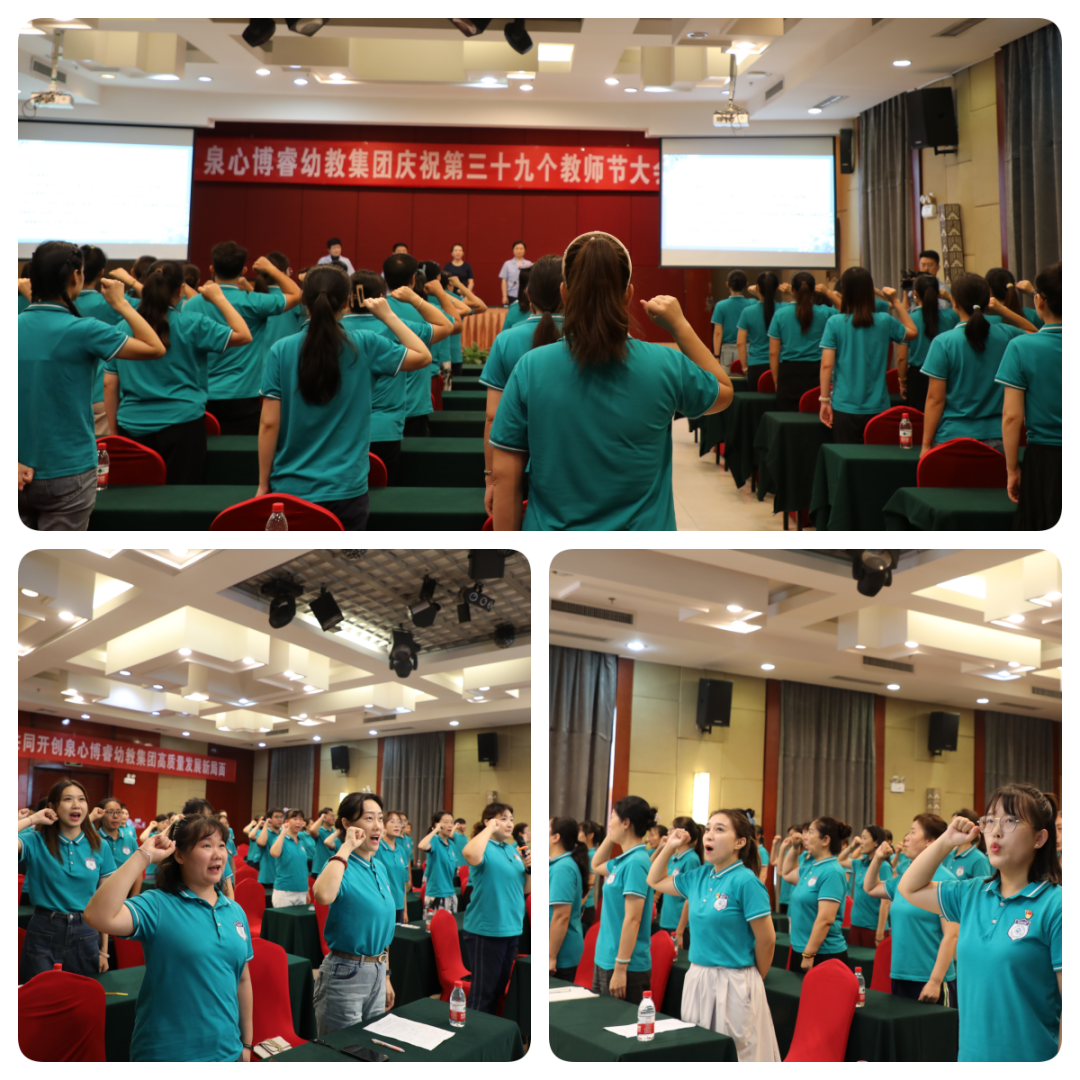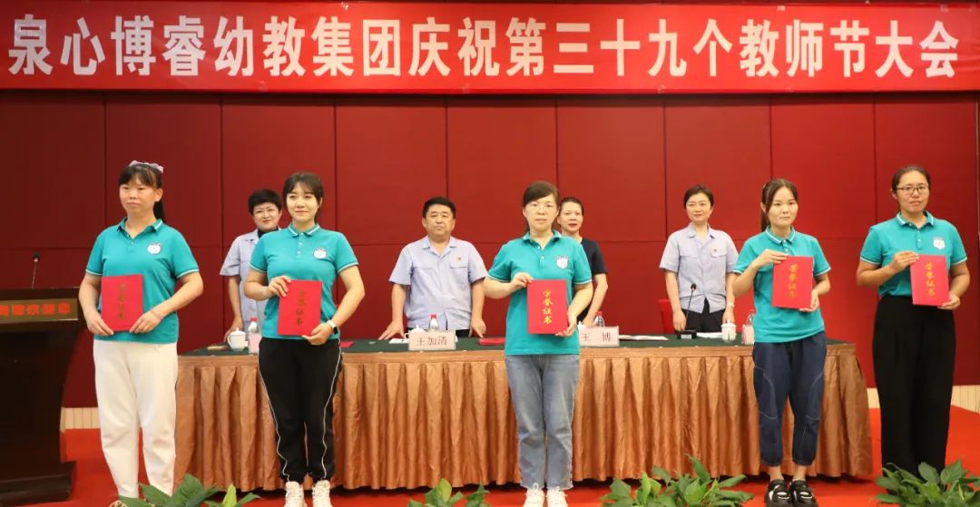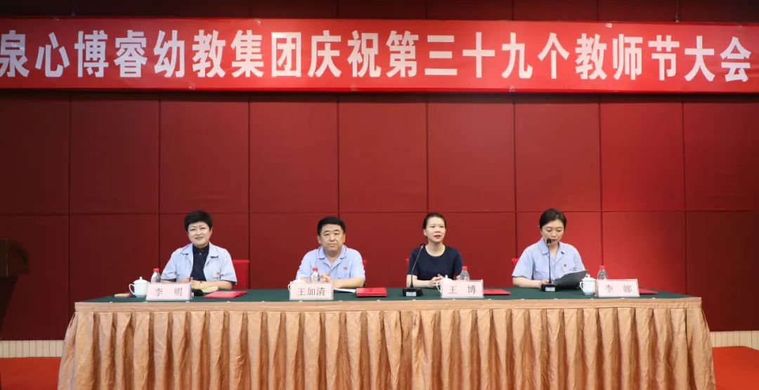 9月7日,泉心博睿幼教集團在濟煉賓館召開慶祝第39個教師節(jié)大會。總經理王加清、總經濟師李明,歷元學校校長王博出席會議并在主席臺就座。王加清作了講話,他代表公司向幼教集團全體教職工致以誠摯的問候和良好的祝愿,向支持幼教事業(yè)發(fā)展的各位領導、各界朋友表示衷心的感謝。李明對幼教集團的教育教學工作提出了要求。王博以中高考的命題趨勢為切入點,和大家分享了關于幼小初貫通培養(yǎng)和教育銜接的觀點和看法。會議由幼教集團負責人李娜主持。幼教集團60余名教職工參加大會。